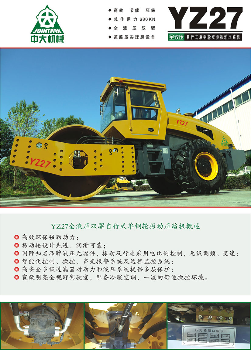 YZ27全液壓雙驅(qū)自行式單鋼輪振動(dòng)壓路機(jī)